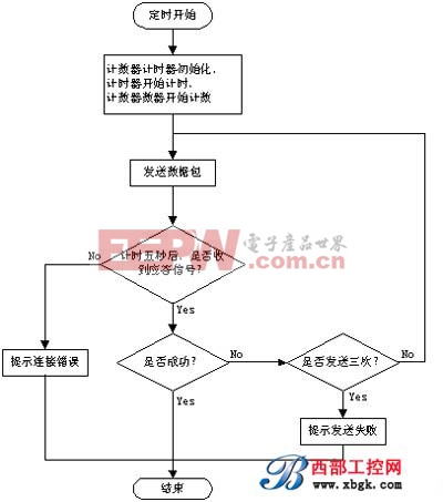 能源采集系统定时主动发送数据包,并准备接受应答信号,5秒后若无应答信号,则提示连接错误;若应答信号为不成功,则重新发送数据包(三次不成功则提示数据发送失败);若应答信号为成功,则结束本次发送。