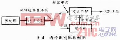 本系统采用VO/DHMM(矢量量化/离散隐马尔可夫模型)算法,其主要包括预处理、特征提取、语音训练、模式匹配等几个方面。