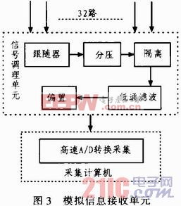 该遥测信息接收装置设计采用全时段、全数据接收的思想,数字遥测信息接收单元以单片机为核心,提高了测试板对数据的自主处理能力;模拟遥测信息接收单元通过信号隔离,最大程度减少了设备对产品的影响,使用高速A/D采集保证了信号测试精度;全时段数据接收及图谱分析使数据分析及故障甄别更简易准确。通过安装调试及大量的实验表面,该遥测信号接收装置工作可靠满足导弹飞控系统测试要求。