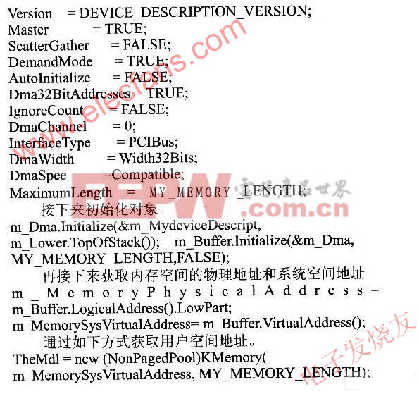 为了加快数据传输速度,驱动程序使用DMA的方式把CY7C09449共享存储区内的数据读取到主机的存储器内。