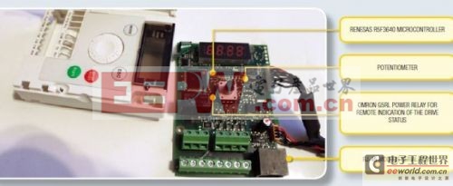 图9,微控制器的子卡负责完成变频器功能。图10,显示板一般位于前面板后方,一只瑞萨的微控制器用于驱动和控制显示屏,以及Modbus串行端口的连接。