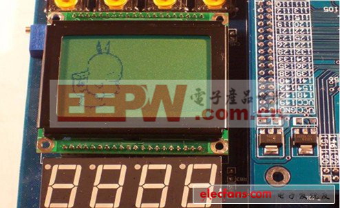 在如上系统中右边有一个 128×64 带背光的点阵型液晶。我们的实验就是用Verilog HDL 编写一段代码驱动液晶显示一个流氓兔。其效果如图 2 所示: