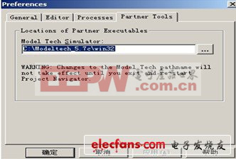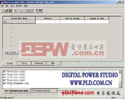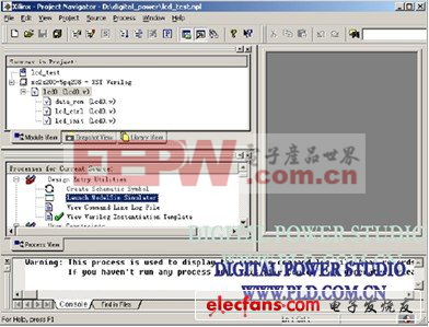 3.调用 Modsim 进行仿真 由于 modsim 的性能非常优秀,以及它的普及程度广,在本文中,介绍如何调用 modsim。首先,在 edit 菜单中选择 Preferences 选项,弹出如图 12 所示对话框。在 Partner Tools 中的 Model Tech Simulator 输入框中填入您所安装的 Modsim 应用程序文件的路径。若您所装的 Modsim 版本为专门为 Xilinx 编写的 Modsim Xilinx edition版本,可以省略该步骤。经过设置以后,回到如图 13 所示界面。 4.约束文件 ISE 是一款基于约束的开发工具。在进行高速数字电路设计的时候,需要在综合、映射、布线时附加约束条件,以便控制综合、映射、布线过程,使设计满运行速度,使用资源和引脚位置等要求。约束包括时序约束、分组约束和区域约束。在本文中,将介绍最常用的Constraints Editor 约束编辑器,以及时序约束和引脚绑定(该两者最为基本)。首先,像第二步编写代码文件中一样建立约束文件(.ucf 文件),在本文中,如图 15 所示,可以看到 lcd_c.ucf 文件即为一个约束文件。新建时,唯一的不同是在图 8 中左面对话框中应选择 Implementation Constraints File。同样地,如果已经有现成的约束文件,也可以通过和代码文件相同的方法导入。如图 15 所示,在 Module View 窗口中选中代码的最顶层模块,而后在 ProcessView 窗口中双击 Create Timing Constraints或者 Create Area Constraints,将自动打开 Constraints Editor 约束编辑器。 需要注意的是,双击 Assign Package Pins 将打开引脚与区域约束编辑器PACE,由于 Constraints Editor 约束编辑器完全可以完成引脚绑定的功能,对于PACE 的使用,本文不再进行详细讨论。Constraints Editor 如图 16 所示。 如图 16 所示,共有四类约束界面,Global 为附加全局约束,Ports 为附加端口约束,Advanced 为附加分组约束和时序约束,Misc 为附加专用约束。常用的是 Ports,其中可以进行引脚绑定,如图 17 所示。双击对应信号的Location 框,可以进行输入。在引脚号前必须加上字母 p。在这次 LCD 实验中,可以直接导入 digital power 提供的 lcd_c.ucf 文件,也可以自己在 Constraints Editor 中如图 17 中所示一样进行设置。 图17 附加引脚约束 通过以上设置,就完成了约束,在这里附加提到一点就是,在 Constraints Editor 中,下方的对话框将显示 ucf 文件的内容。约束文件也可以通过文本输入的方式完成,在图 15 中双击 Edit Constraints(Text)即可。5.综合与实现 在进行完约束以后,就可以进行综合与约束了。综合与实现的工作将由 ISE自动完成,用户通过约束文件和对 properties 选项控制实现对整个过程的控制。整个过程将产生映射、布线等一系列时序报告以及 RTL schematic View,还可以利用 XPower 进行功耗分析,便于用户对综合与实现的结果有个详细的了解。 综合与实现如图 18 所示。 在 process view 中,Synthesize 为综合过程,Implement Design 为实现过程。在其上点击右键选择 properties 选项,将进入 properties 对话框,可以对过程要求进行控制。一般直接点击右键选择 run all 即可。 6.下载 最后就只剩下下载工作了。在下载之前,必须先将硬件准备好。首先,如图 19 所示,连接好电源线。 其次,如图 20 所示,连接好下载线。 iMPACT 如图 22 所示。 在图 22 中,点击下一步。 如图 23 所示,是选择配置 FPGA 的方式,选择第一项边界扫描(JTAG)方式。点击下一步。进入下一界面后,点击完成。若硬件连接正确,将进入图 24 所示界面,XC2S200 芯片将被自动搜索到,显示出来。若硬件连接有问题,可以在正确改
