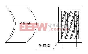 这种传感器是由一个直径为30 微米的铂丝绕成的线圈被夹在两层聚酰亚胺箔片之间,通过两条镍带与外界连接,其厚度只有0.3mm厚,易用于曲面的温度测量,热损失极少,测量面积较大,达到快速响应。在实际使用中,把它粘贴在弧形的磁铁内侧,在进行温度测量时,将磁铁吸附在轴上即可使用,方便快捷。如下图2所示: