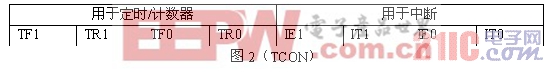 从图2中我们能看出,TCON也被分成两部份,高4位用于定时/计数器,低4位则用于中断(我们暂不管)。而TF1(0)我们上节课已提到了,当计数溢出后TF1(0)就由0变为1。原来TF1(0)在这儿!那么TR0、TR1又是什么呢?看上节课的图。
