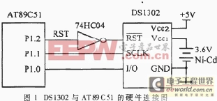美国Dallas公司推出的串行接口实时时钟芯片DSl302可对时钟芯片备份电池进行涓流充电。由于该芯片具有体积小、功耗低、接口容易、占用CPUI/O口线少等主要特点,故该芯片可作为实时时钟广泛应用于智能化仪器仪表中。