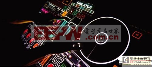展望未来,除触摸屏以外,还有更多的控制界面会很快进入市场。当屏幕大于10英寸时,自电容和互电容检测都变得不再实用,并且有些设备需要较大面积的物理接触。例如,SmithsonMartin公司的Emulator DJ System就是一个透明的混音台,它能让观众通过混音板看到DJ(图3)。透明屏幕下面有一个投影仪,它将DJ在屏幕上看到的按键、旋钮与滑杆显示出来。观众也可以通过透明屏幕看到DJ,角落的摄像头可以通过追踪DJ手指的运动而实现触摸屏。