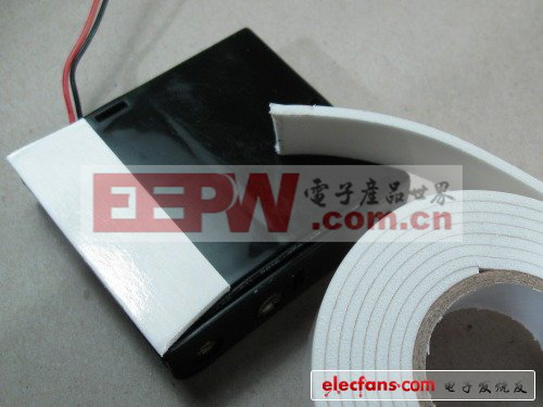 这次我用四个电池的电池槽,因为这比较大,可以轻易把其他东西粘在上面。