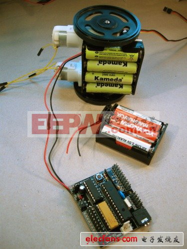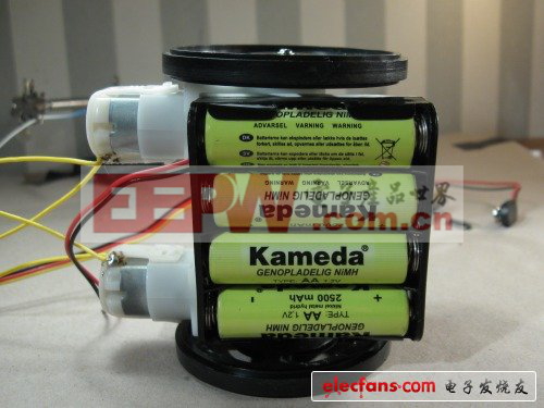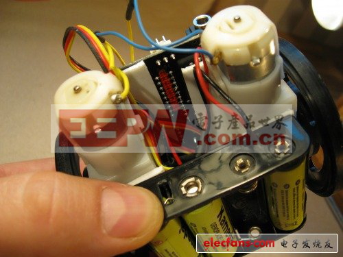 你需要做的事是把电池盒贴在马达上面,利用双面胶。如果电池装在里面,同时轮子足够大能够把它们放在车轴下面,这个东西的就可以自己保持平衡。