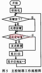 从图3中可以看出接收部分得到信号未进入单片机就直接通过发送模块送出。既完成了控制要求,又简化了连接方式。 3.3 从控制器软件设计 当从控制器接收到数据后,即工作于外控方式;如果一段时间没有收到外部数据,则自动转换成内控方式。具体的程序流程图如图6所示。