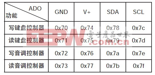 表1 2线接口地址分配表