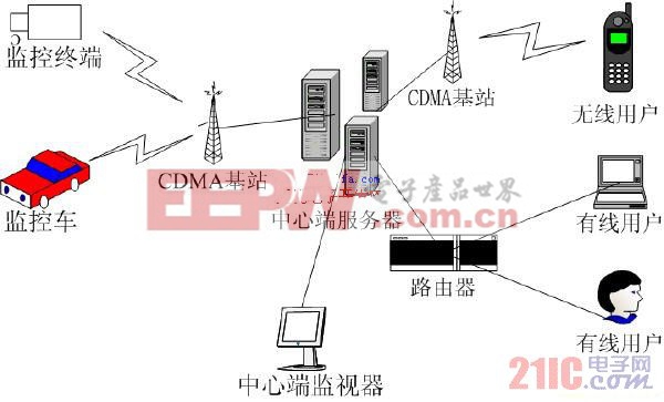 码分多址无线网络具有覆盖面广、高效、低成本的特点。码分多址网络的数据传输速率可达150 kb/s。这里开发的嵌入式无线视频定位监控系统就是充分利用了H.264视频压缩技术码分多址无线网络技术和嵌人式系统的特点而搭建的数据传输系统。