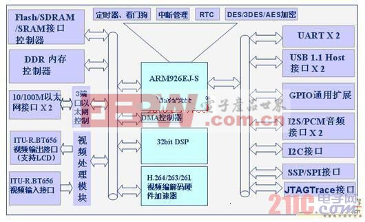 Hi3510使用ARM926EJ-S内核,哈佛结构的32位RISC处理器,其内内置MMU,主频可达到 240MHz,可以很好得运行嵌人式Linux2.6,不但保持了嵌人式系统小型化、低功耗、易携带的特点,又充分利用了Linux系统完整的内存、文件、线程管理功能,大大方便了程序的开发和程序中多任务功能的实现。
