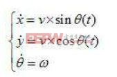 式中: (x, y)为机器人中心O点的参考坐标;θ为机器人中心O点的运动方向角;ν为机器人中心O点的速度;ω为机器人差动转向的角速度。
