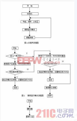 初始化部分:除进行I/O口、各寄存器的初始化外,扫描按键,如果有特定的组合键按下,进入工厂模式,用于生产线上调校。否则,为用户模式。