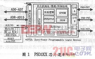 典型的PSD3XX系列芯片逻辑结构见图1,其主要特征有: