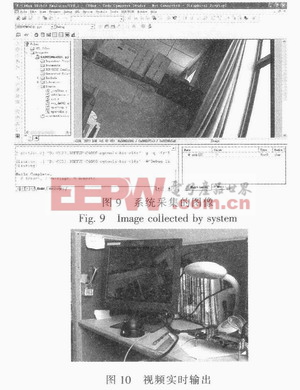 视频解码芯片TVP5150APBS的IIC地址设置为0xB8.另外,在程序中还需要对TVP5150APBS相关的寄存器进行必要的设置以满足系统的要求。编写图像采集程序,TVP5150APBS能够实时采集图像。程序在CCS中经过编译、运行后采集到的图像如图9所示。