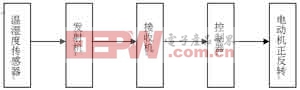 该系统主要由五部分组成,其中SHT11传感器和AT89C51单片机用来进行信号采集和存储,MICRF102用来发射数字信号,MICRF002接收数字信号经过解调后传送给控制部分AT89C51单片机,最后由继电器控制电机进行正反转。系统原理图如图1所示。