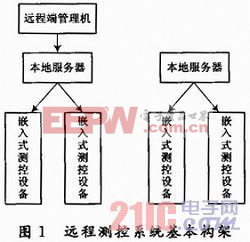 基于Web方式的嵌人式远程测控系统的基本架构如图1所示。该远程测控系统主要由嵌入式测控单元、本地服务器与远端管理主机这三部分组成。