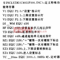 ACALLWORK4;调“设置”键处理子程序。用户进入极值设定状态,实现上下限极值显示的转换ACALLDISP;调显示子程序SJMPLOOP0