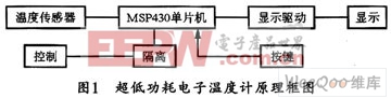图1所示是本超低功耗电子温度计的硬件原理框图。下面给出其它单元电路的设计方案。