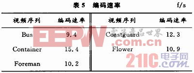 将X.264简单DSP代码化移植到DM642上,编码速率很低,只有平均0.6 f/s。对比表中所示的数据可知,对于纹理简单,运动不激烈的视频序列,编码帧数可达15 f/s左右,对于运动激烈,背景纹理较复杂的视频序列,则只有10 f/s左右。通过解压图片可以看出,解码后的图像没有发生明显的失真。