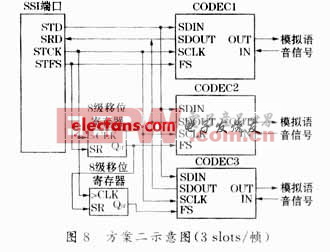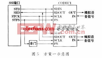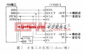 图7为方案二的连接示意框图,DSP中的SSI端口的配置与方案一的完全相同。