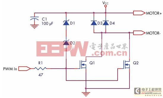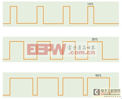 用数字方式控制模拟电机电路的一种典型方法是采用脉冲宽度调制(PWM)。此时方波的时间周期是恒定的,而接通时间(TON)即信号保持高电平的时间可以被改变或调制。因此,信号的占空比或平均直流电平是变化的。借助于数字系统的支持,PWM已经成为控制模拟电路的一种极好方式。图1就是数字脉冲的接通时间改变的例子。