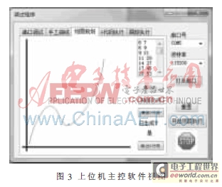 这5个模块被设计在一个Windows窗体中,不同功能设计在不同选项卡中,因此只需切换选项卡就可以轻松实现功能的切换。在窗体的右侧有一列独立于选项卡容器的对象,其功能是对串口通信进行设置,控制FPGA执行的起停以及对监视功能进行复位。上位机主控软件视图如图3所示。