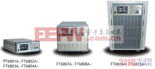 深圳市费思泰克科技有限公司(以下简称费思科技)研制的FT6800A系列大功率可编程直流电子负载(型号FT6801A、FT6802A、FT6803A、FT6804A、FT6807A、FT6808A、FT68014A及FT6815A等系列型号,功率可达50KW),本系列的部分电子负载单台功率从1 .6KW—10.4KW,电流最大值为600A,而电压最大值为500V,各款型号电子负载的基本参数如下: