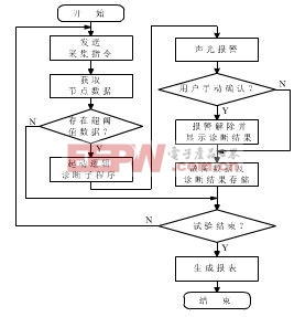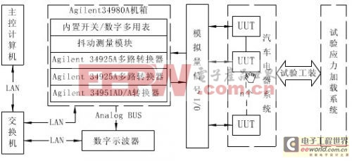 控制的任务。 3.2 LXI 虚拟仪器模块 1)测试主机系统选用AGILENT 34980A 开关/测量单元作为硬件平台,通过内置数字多用表对待侧信号进行测量转换和输出。测试主机通过LAN 总线与主控计算机进行通讯和数据交换。 图3:系统硬件构成 3.3 关键问题 1) 频率信号的测量待测信号同时存在100Hz 以上和3Hz 以下的频率信号,由于系统是公共DMM 等时扫描测量的方式,两种信号需采用不同的采样方式进行测量。对于高频信号将系统扫描通道设置为频率测量直接输出。对于低于3Hz 低频信号,由于其频率过低频率通道无法直接测量,因此需采用拟合的方式。此种方式对系统扫描频率有较高要求根据 Nyquist 定理: 单通道采样率应由待测信号频率上限决定; 故有: 2)瞬断监控的实现瞬断作为一种电路瞬态现象,DMM 分时采样方法采样率过低,无法对该类信号实现监控,而多通道并行的模拟量数据采*导致大量的数据冗余和过高的系统成本。系统使用了抖动测量模块以32 通道并行的数字量采样方式实时监测各通道电压跳变情况,单通道最高采样率为0.1μs,根据汽车电器的试验电压将监控电压阈值设定为10.5V/21V 可选。 4 系统应用软件设计 4.1 软件开发环境 系统选用LabWindows/CVI 作为软件开发平台。它具有交互式编程方法和丰富的库函数,为开发人员建立数据采集和过程监控系统提供了理想的软件开发环境,是实现虚拟仪器及网络化仪器的快速途径。 4.2 试验监控中的多线程技术 Windows 是弱实时性的操作系统.它通过线程的优先级来实现抢先,通过对测试线程进行适当的优先级设置来满足大部分测试任务的实时性要求。试验监控要求系统控制、数据采集、数据显示和数据分析各项功能同步完成。利用LabWindows/CVI 多线程中的线程池技术可以很好的实现系统的实时性。以界面控制作为主线程,通过界面操作向其它线程发出控制指令,使系统能够对用户操作及时响应;数据采集、实时显示、故障诊断作为辅助线程,与主线程同步执行。在辅助线程中,实时显示线程和数据分析线程通过管道消息驱动机制与数据采集线程进行实时的通信,实现线程间的数据共享。 4.3 故障诊断方法 按照逻辑识别原理:故障原因函数A 、故障特征函数X 和决策规则E 三者满足布尔函数关系,故障诊断过程的实质就是从已知的X 、E 中解出A ,用逻辑语言表示为:其实现方法是将被试系统按UUT 工作特性划分为6 种典型的监控单元类型,并针对类型设计相应的故障识别子程序,其内容包括: 1. 以监控单元类型为对象建立典型故障模式数据库,即构建故障原因函数A; 运行过程中,系统发出采集指令并取回数据,数据处理线程首先将各待测物理量实时数据与阈值库中UUT 状态参数对应的阈值进行对比,当发现有超阈值数据便认为有故障发生,开始起动该UUT 所属类型对应的故障识别子程序进行故障诊断,诊断子程序执行结束后实现诊断结果输出并作记录。图4 说明了系统的故障诊断过程。 4.4 系统数据管理及数据库 系统以Microsoft SQL Server 为底层建立数据库,通过SQL Toolkit 建立ODBC 数据源,对数据库进行连接和数据信息存取的操作。系统配置数据可由开放的用户界面生成,使用户可以针对不同的试验对象对系统进行相应配置,从而确保了系统的灵活性和通用性。 5 结束语 该系统应用于某汽车企业的振动可靠性试验之中,解决了汽车电器系统试验过程的智能监控问题。使用结果表明,