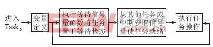 要是显示断路器是否具备可以操动的条件、断路器的合/分闸状态、断路器的动作执行情况、输出控制断路器动作命令等。CPLD的控制框图如图2所示。CPLD作为一个单独的控制执行机构,通过编写相应的VHDL代码,即可以生成相应的操作电路,包括对各种输入信号的锁存、判断和处理,以及对各种命令信号的执行,对输出信号的控制。 软件设计 软件设计包括系统软件设计和应用软件设计。 图2 CPLD的控制框图 系统软件设计的主要任务是实现μC/OS-Ⅱ在F2812上的移植;应用软件设计的主要任务是系统功能的实现。 系统软件设计 μC/OS -Ⅱ简介 本设计系统软件采用源代码公开实时操作系统μC/OS-Ⅱ,它是一个基于优先级的、可移植、可固化、可裁剪、占先式实时操作系统,其绝大部分源码是用ANSIC写的。 μC/OS-Ⅱ在F2812上的移植要使用μC/OS-Ⅱ,首先要把内核成功移植到所使用的CPU上。μC/OS-Ⅱ在F2812上的移植工作包括4个内容。 a.在OS_CPU.H中定义与处理器相关的常量、宏及数据类型。例如关中断和开中断的定义分别为#defineOS_ENTER_CRITICAL()asm“DINT”及#defineOS_EXIT_CRITICAL()asm“EINT”。 b.调整和修改头文件OS_CFG.H,以裁减或修改μC/OS-Ⅱ的系统服务,减少资源损耗。例如, #defineOS_MBOX_EN0即禁止使用邮箱相关的代码。 c.编写C语言文件OS_CPU.C。由于本设计中未用到其他几个函数,因此这里主要完成函数OSTaskStkInit()的编写。OSTaskStkInit()用来初始化任务的堆栈结构,使其看起来象刚发生过中断并将所有的寄存器保存到堆栈的情形一样。 d.编写汇编语言文件OS_CPU.ASM。本文件包括4个子函数程序:OSStartHighRdy()(运行最高优先级任务),OSCtxSw()(任务级的任务切换),OSIntCtxSw()(中断级的任务切换)和OSTickISR()(μC/OS-Ⅱ时间节拍中断函数),这是μC/OS-Ⅱ移植中的重点和难点,这几个函数的合理实现,是保证μC/OS-Ⅱ运行的基础。 上述工作完成后,μC/OS-Ⅱ就可以运行了。 应用软件设计 根据智能控制单元的功能要求,将系统分为交流电压采集模块、数据处理模块、断路器动作时间预测模块、通信模块、以及与CPLD的接口模块共11个任务和3个中断来实现,每个任务根据其实时性的要求并参照单调执行率调度法RMS分配一定的优先级、任务及中断的定义,如表1所示。 优先级最高的是开始任务(TaskStart),这是系统启动后运行的第1个任务。在该任务中要完成系统及相关外设的初始化,并进行必要的自检测,然后创建其余的各个任务。在完成其余各个任务创建之后,该任务要删除自己,把系统资源让给其他任务,整个系统开始正常运行。该任务的示意代码如下: /*系统及外设初始化*/ /*系统自检测*/ /*创建各个任务*/ StartCpuTimer2();/*启动时间片*/ OSStatInit();/*统计任务初始化*/ 创建智能控制单元的各个应用任务; KickDog();/*WatchDog复位*/ OSTaskdel(OS_PRIO_SELF);/*删除开始任务*/ 除了TaskStart()之外,其余各任务模块的结构都是无限循环体,图3给出了一般任务流程图。 图3 任务流程图 任务通信与同步 μC/OS-Ⅱ提供了5种用于数据共享和任务通信的方法:信号量、邮箱、消息队列、事件标志及互斥型信号量。信号量可以控制共享资源的使用权,也可以协调外部事件与任务的执行,提供了任务间通信、同步和互斥的最快通信,μC/OS-Ⅱ提供了3种类型的信号量,即二进制型、计数型和互斥型。事件标志可使任务与多个事件同步,若与多个事件的任何一个同步,称为独立型同步;若与多个事件都同步,称之为关联型同步。邮箱是一种通信机制,它可以发送一个指针型的变量,该指针指向一个包含了特定消息的数据结构。消息队列是另一种通信机制,它可以使一个任务或中断服务子程序向另一个任务发送以指针定义的变量,具体应用不同,每个指针指向的数据结构也不同。互斥型信号量是一种特殊的二进制型信号量,主要用于解决内在的互斥问题,减少实际应用中所必需的优先级翻转。在设计智能控制单元软件时,充分利用了μC/OS-Ⅱ提供的这些通信机制,以协调各独立任务的运行。 通信协议的实现 F2812提供了标准的CAN2.0B总线协议,而此协议是一种物理层协议,因为该智能控制单元用于电力系统控制中,电力系统通用的应用层协议主要有CDT,MODBUS,DNP3.0等,在本设计的过程中应用层的协议将采用MODBUS协议,通信协议的实现比较复杂,但是由于采用了实时操作系统,通信协议的实现可以由操作系统统一管理,主要由数据的接收、发送、打包、解包任务完成。 总结 a.设计中使用具有多外设的新型高性能DSPTMS320F2812芯片,大大减少了系统硬