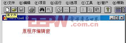 按钮建立新的单片机程序文件;这时下面的灰色框中会打开一个如“记事本”模样的编辑窗。