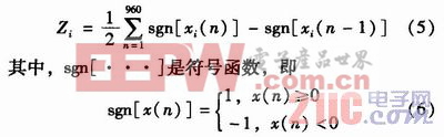 短时过零率是指每帧内信号通过零值的次数,对于数字音频信号实质上就是一帧信号采样点符号的变化次数,由于采样频率是固定的,因此短时过零率可以在一定程度上反映音频信号的频谱特征,用作一种音频信号频率的粗略估计。短时过零率Zi表示为