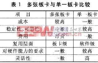 表1详细比较了上述2套方案的优缺点。第2种设计方案中,因为有了FPGA器件,使得原来考虑不周的设计可以只重新配置硬件就得以修改,减少重新制版的周期、经费等一系列不确定因素,达到更广泛的测试目的。