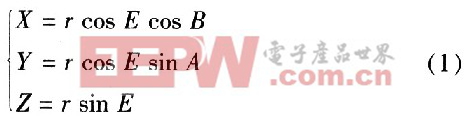 显然,若卫星P与观测点之间的距离为r,E为任意可见卫星P的仰角,B为卫星的方位角,则P的三维坐标为(X,Y,Z)满足: