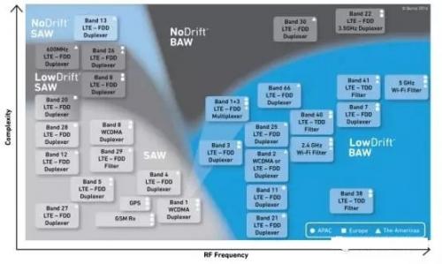 Qorvo总裁Bob Bruggeworth在接受微波杂志采访的时候提到,Qorvo独有的的LowDrift BAW滤波器技术相比其他声学滤波器技术具有本质上的性能优势,可以帮助下一代智能手机用户显著改进移动数据服务。高性能BAW滤波器能满足严苛的技术要求,如高度的频率选择性、收发频段的狭窄缝隙,确保温度性能一致性等。
