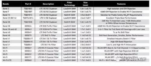 我们也可以看到,Qorvo的先进滤波器解决方案在增加性能之余,还将其尺寸大幅度降低,让开发者在将其在和PA、开关和其他RF前端集成的时候,大大提高了灵活度。