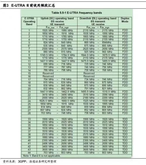 表1整理了2G至4G射频前端解决方案中器件的数量,可以看到,4G方案的射频前端芯片数量相比2G方案和3G方案有了明显的增长。印证了我们对手机射频前端芯片的数量随着支持频段数量的增加而指数级递增的推论。