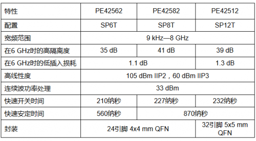 派更半导体公司推出UltraCMOS PE42562、PE42582和PE42512高掷数射频开关