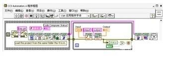 一部分是在图中左侧的顺序结构。对应于CCS自动进程,包括CCS打开项目VI、CCS创建VI、CCS复位VI、CCS加载代码VI和CCS运行VI。此外,还有顺序结构右侧的CCS中断VI和CCS关闭项VI目也是CCS自动进程的一部分。顺序结构中的文件I/O模版的三个函数用来创建CCS项目文件路径,这样就可以在CCS中打开项目文件。通过这些VI和函数,打开CCS、创建项目、在DSP上加载和运行程序,这些进程都可以通过LabVIEW一端来控制。顺序结构中的Dsp.pjt是DSP项目,如LMS.pjt、FFT.pjt等,由设计者依据不同设计要求在CCS中创建。