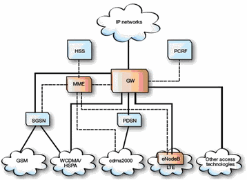 图中显示了如何将cdma2000系统集成到LTE-SAE体系结构中。