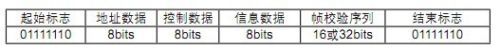 为了使FPGA的设计能够实现HDLC的基本功能并能按照各项标准的规定灵活采用不同的CRC校验算法,首先看一下HDLC基本的帧结构形式。