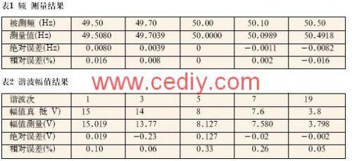 经过分析以上各参数可看出:当频率是50Hz左右时,最大误差不超过0.01Hz,谐波分析的19次谐波呈波次越高幅度越小的趋势,并且所得各次谐波幅度比较符合实际情况。由于本系统采用了自适应调整采样间隔技术来实现同步采样,所以保证了参数的测量精度。