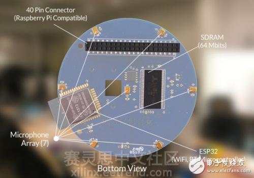 下面两张图分别显示MATRIX Voice的顶层和底层版面视图: