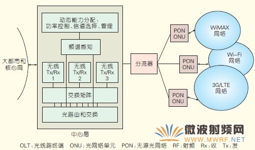 (1) 接入点(AP) 节点成本降低,中心基站成本提高。在常规的WLAN网络中,AP 具有调制解调并具有信号处理功能,在本方案中AP 只完成光变成电(O/E) 或电变成光(E/0) 的功能,AP 的调制解调功能和管理功能都转移到中心基站,降低了无线接入节点的成本,但却增加了中心基站的成本。