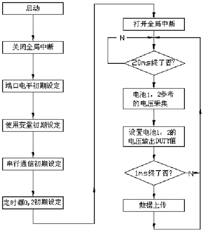 图4 控制流程 由于没有现成的蓄电池,需用替代电池来进行实验。充电过程中蓄电池内阻和端电压都在不断变化,并且充电过程中电池蓄积能量,根据对蓄电池的物理性质的分析和相关资料,采用"电阻串联电容"来替代单体蓄电池来进行实验。