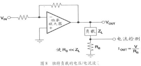 评价独特的负载和信号可能是复杂的,利用放大器的功耗等于电源的功率减去负载功率的原理,由电源输送的功率可以用如图7所示的方法来测量,来自每个电源的功率等于平均电流乘它的电压。如果输出波形是不对称的,要分别地测量和计算正和负电源,并把两个功率相加。如果波形是对称的,你可以测量一次并乘2。用平均值响应仪表来测量电流,一种简单的带有电流分流器装置的D'Arsonval型仪表工作得很好,不要使用有效值响应仪表。