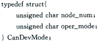 其中,node_num意义同上,oper_mode表示该节点的工作模式。MCP2515共有5种工作模式,分别是配置模式、休眠模式、仅监听模式、回环模式和正常模式。一般设备都工作在正常模式。