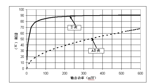 由于效率低且散热高,AB类放大器不能无饱和或无失真地提供高于1W的输出功率。而D类放大器在开关状态下工作,所以它放大音频信号的效率高,因此可以提供更大的输出功率,以支持大容量音频回放。